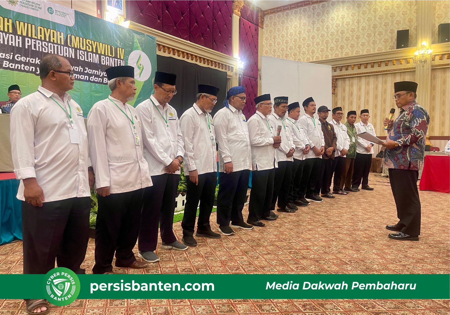 Usai penetapan pelantikan, lantunan baiat dipimpin langsung oleh H. Salam Russyad. Para pengurus baru mengikuti sumpah dengan khidmat—menandai berakhirnya seluruh rangkaian Musywil ke-4 dan dimulainya amanah baru PW PERSIS Banten untuk masa jihad 2025–2030.